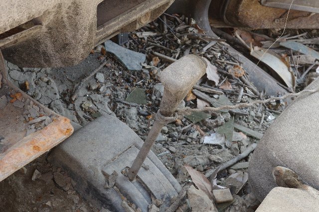 背面ドアと左の後部ドアが、近くに落ちていない。事故や盗難車の遺棄ならば付近に無ければおかしいと思われる。