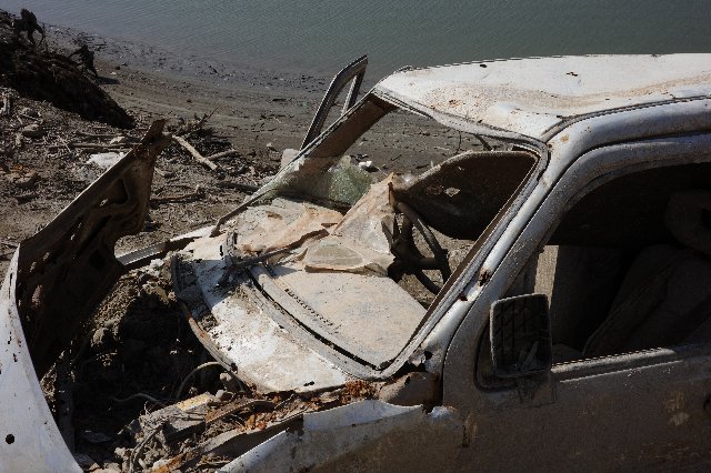そして私ですがニュースで散々話題になっている相模原の、渇水の津久井湖の底から現れた、水没したワゴンRを見に行ってきました!