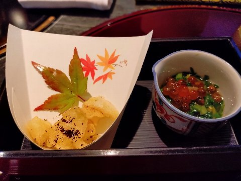 メニューにある百合根だったり、お造りのキンメダイの刺身も初めてだし、カマス柚子庵むかご挟み杉板焼きなどは、調理法も未知です。