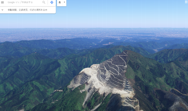 天然の山ではなく、良質な石灰岩を産出するばかりに採掘でこのような姿に…。