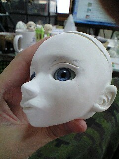 この辺りでドールアイやウィッグが共用できるように、はるかヘッドを見ながら作っています。