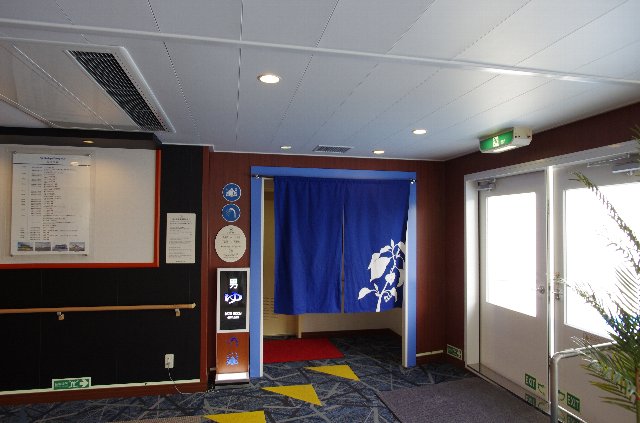 風呂は唯一無二の屋上展望大浴場、それも露天風呂が付いてます!船の上ですよ! ジャグジーとかプールは結構ありますけど、日本式の男女別屋上露天大浴場は多分他にないです。 露天じゃなければ日本の大型船には割とありますが。