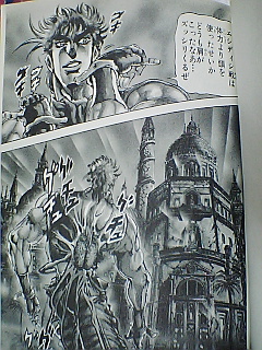ジョセフの体を張ったギャグ。これ北斗の拳のパロディですよね?
