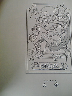 荒木タロットカード超欲しいぞ。もともとトーンは色として使っていて影としては使わない画風でしたが、この真っ白に近いデザインは素晴らしいと思います。なんか初期は弦エニシのタロットカード無断使用だったらしいです。詳細不明。単行本の古いのは旧デザイン版らしい。
