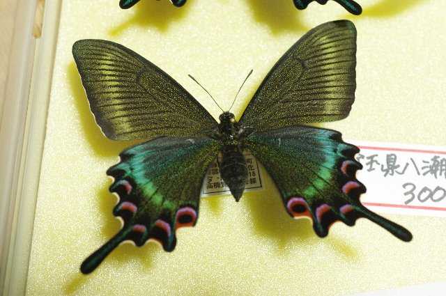 一つ普通のギフチョウで、それも私の家から車で5分くらいの場所で採集したものが、一頭4万円と凄まじい値段で!