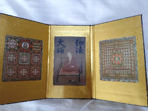 公認ガイド(世襲)が熱烈に勧めてきたので買いましたが、弘法大師のゴールド散華お守と、胎蔵界と金剛界曼荼羅です。
