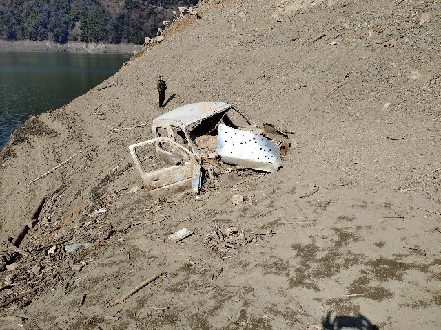 そして私ですがニュースで散々話題になっている相模原の、渇水の津久井湖の底から現れた、水没したワゴンRを見に行ってきました!