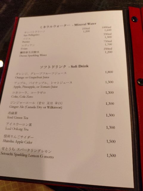 うーん、変にお茶と言っても水と言っても偉いことになりそうだ。むしろ日本酒の方が安いな。1合で1,200円と割と妥当でした。