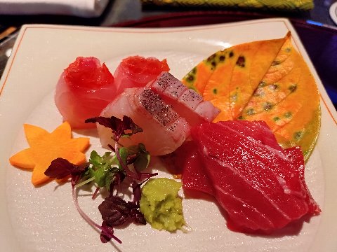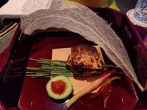 メニューにある百合根だったり、お造りのキンメダイの刺身も初めてだし、カマス柚子庵むかご挟み杉板焼きなどは、調理法も未知です。