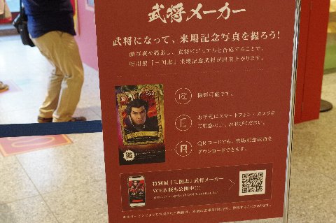 話題のコーナーがこれ、自分の顔から武将を作ってくれる奴。 並ぶので家でPCでやりました。