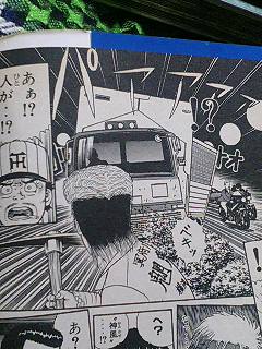 結果避けようとしてバイクはコンテナトラックの前へ、、、
