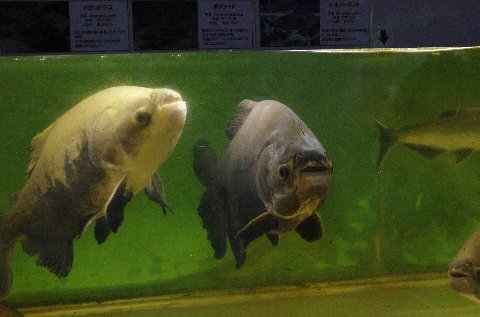 ここは当然ながら淡水魚が多く、それも水槽に対しての魚がすごく大きい。