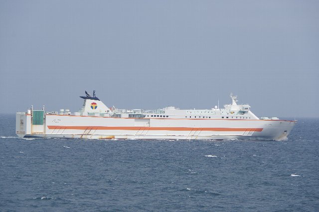 積み込むのは結構ナンバーの無い車両の輸送が多いみたい。 船の中も人は少なかったのでトラックも車だけ輸送みたいです。