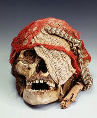 ミイラとか頭蓋変形骸骨(下の写真は首級で違います、頭に幼少時から板で押さえつけて頭骨を変形させる風習があった。)とか凄い細かい織物のマントとか金細工とか普通に見るものはある。