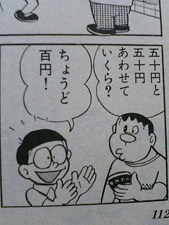 のび「わあい!僕が100円。ドラえもんが50円のだ。」